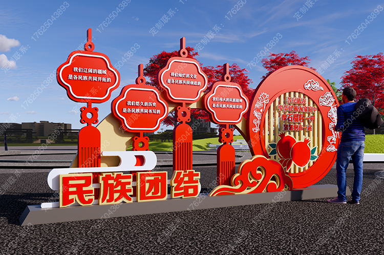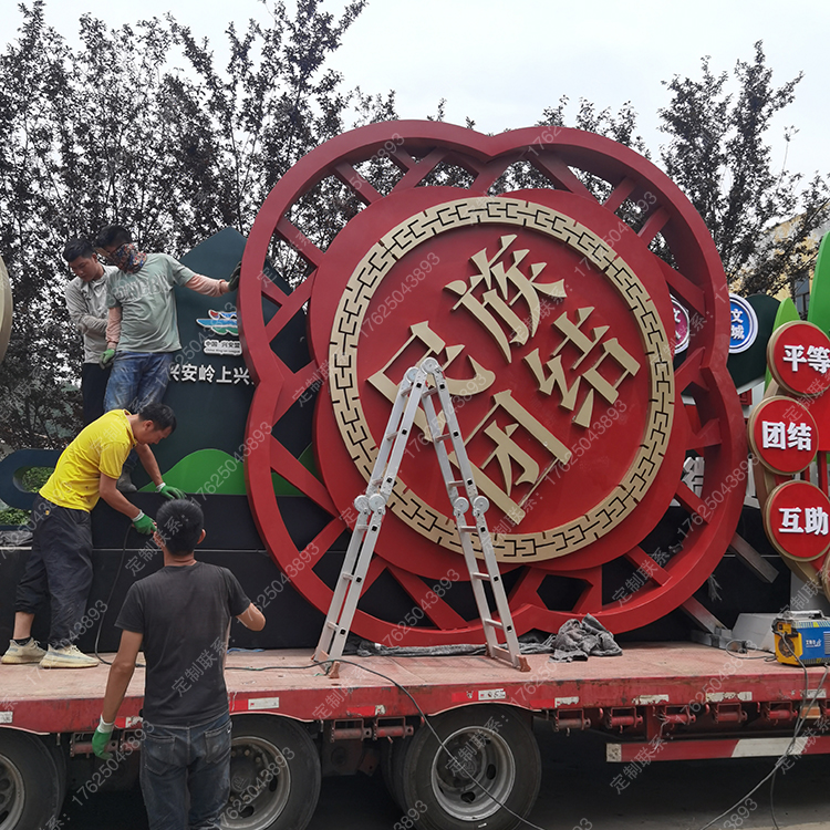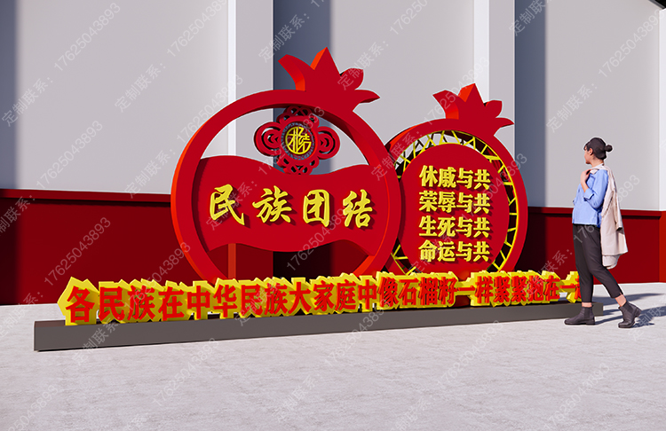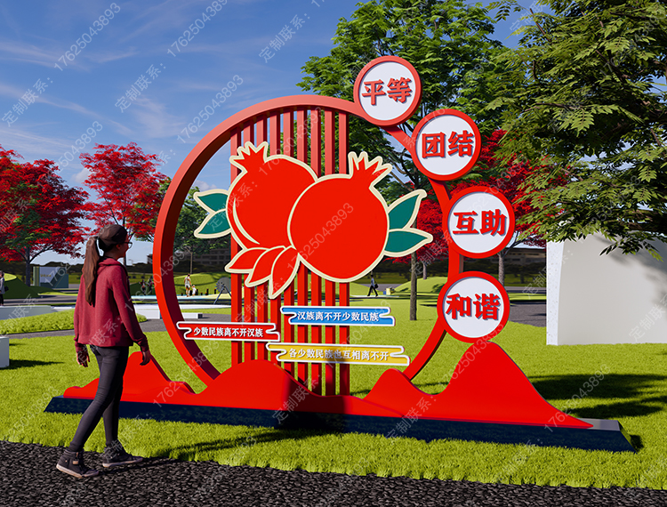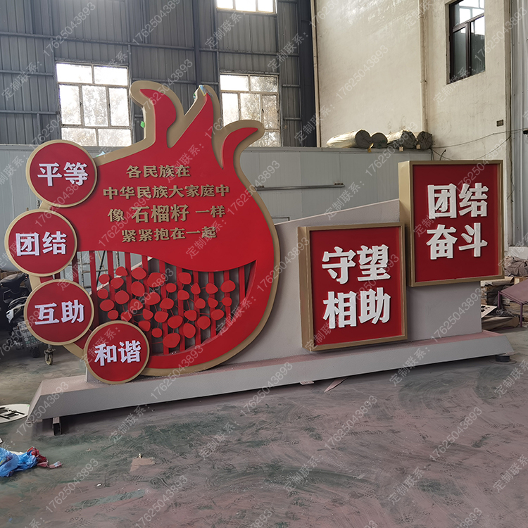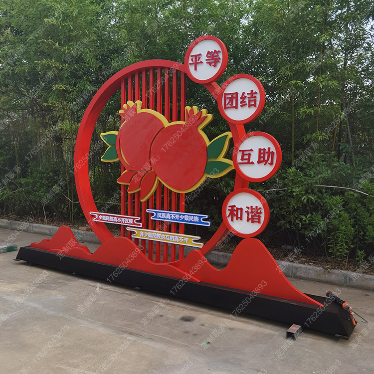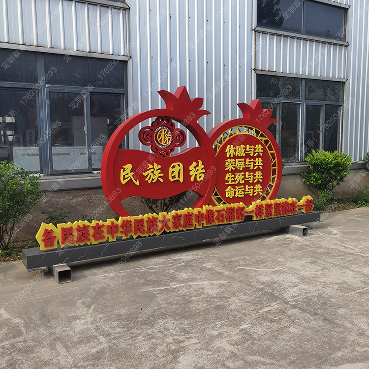 內(nèi)蒙古民族團(tuán)結(jié)廣告牌石榴雕塑創(chuàng)文景觀小品