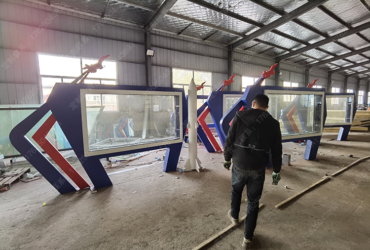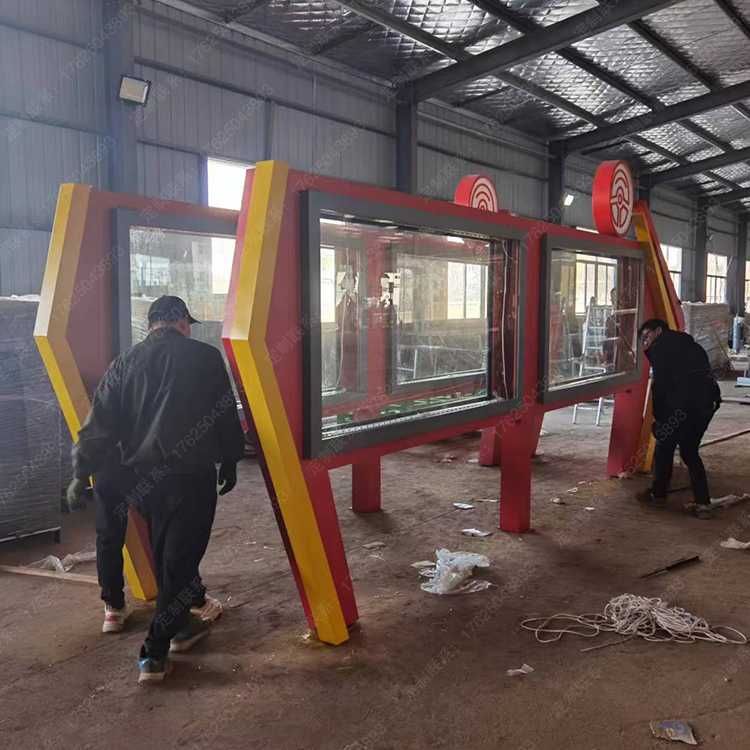 異形宣傳欄不銹鋼部隊燈箱紅色造型廣告牌雙面滾動公告欄高檔特色設計