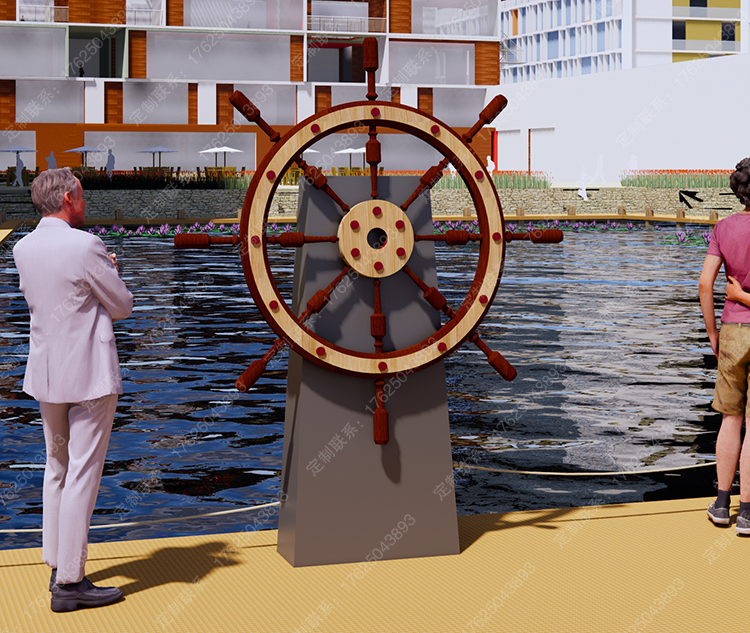 鈑金制作船舵雕塑,可翻轉(zhuǎn)轉(zhuǎn)動(dòng),互動(dòng)道具